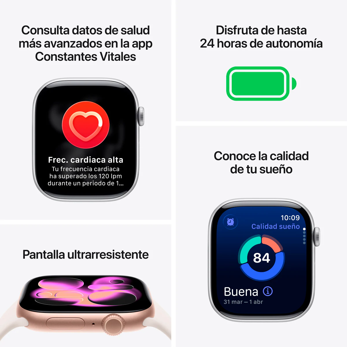 Con la versión GPS podrás recibir notificaciones, llamadas, mensajes y controlar tu música directamente desde la muñeca cuando tienes tu iPhone cerca. El Series 11 permite usar Apple Pay para pagos rápidos y seguros, Siri para gestionar tareas y apps para mantenerte organizado en todo momento.